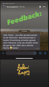 Hallo Stefan, was alles gerade passiert ist der Wahnsinn, Quantensprünge in meiner Entwicklung schreiten gerade noch intensiver voran als ohnehin schon die ganze Zeit. Mehr dazu nächste Woche